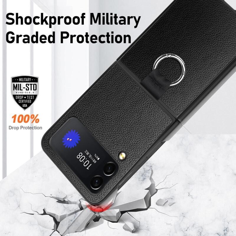 Για Samsung Galaxy Z Flip3 5G Litchi Υφή Προστατευτική θήκη τηλεφώνου με δαχτυλίδι (Καφέ)