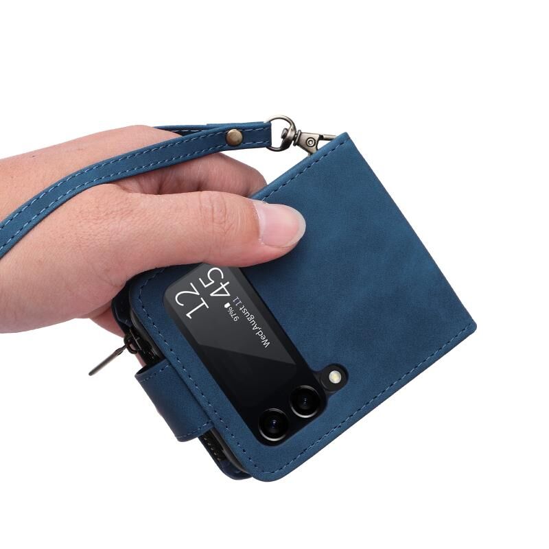 Για Samsung Galaxy Z Flip3 5G Πολυλειτουργικό παγωμένο φερμουάρ πορτοφόλι δερμάτινη θήκη τηλεφώνου (μπλε)