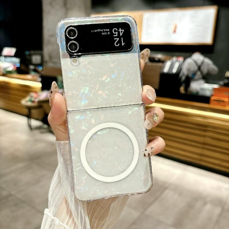 Θήκη τηλεφώνου MagSafe με υφή μαργαριταρένιας επιφάνειας για Samsung Galaxy Z Flip3 5G (Μπεζ)