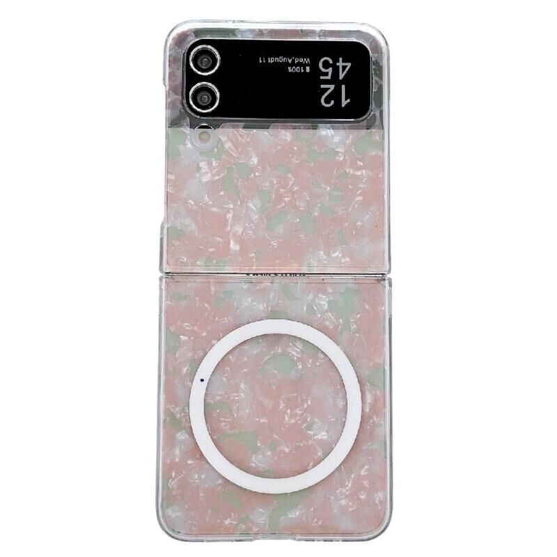 Θήκη τηλεφώνου MagSafe με υφή μαργαριταρένιας επιφάνειας για Samsung Galaxy Z Flip3 5G (Λευκό)