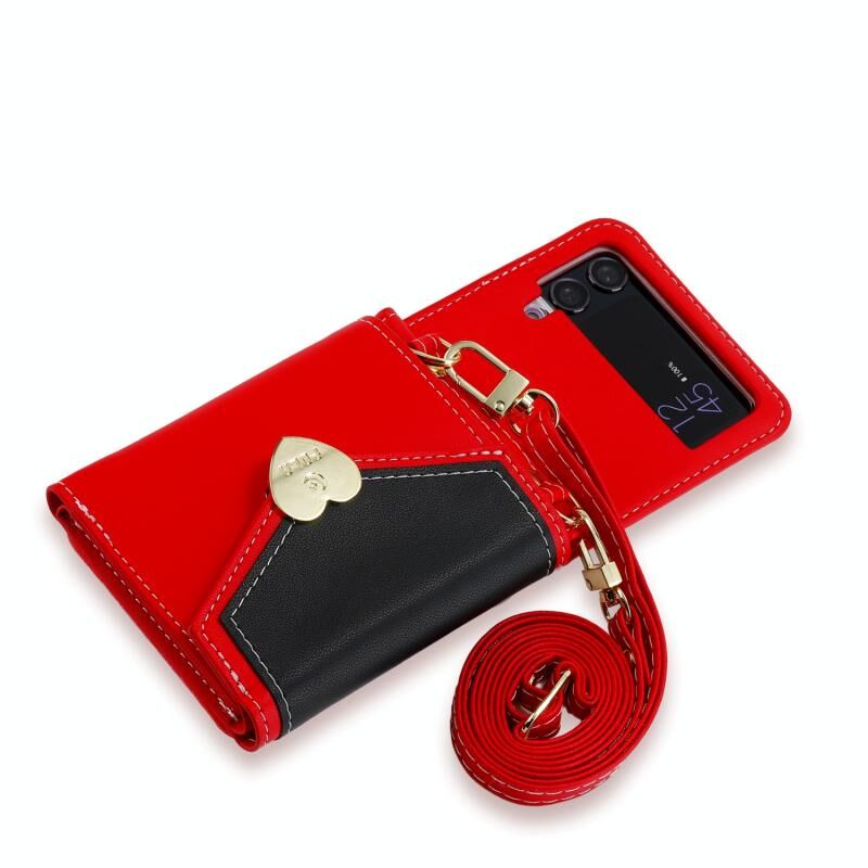 Για Samsung Galaxy Z Flip3 5G POLA Color Block αγάπη πόρπη Multi-Card Slots πορτοφόλι υπόθεση τηλεφώνου (κόκκινο) (Κόκκινο)