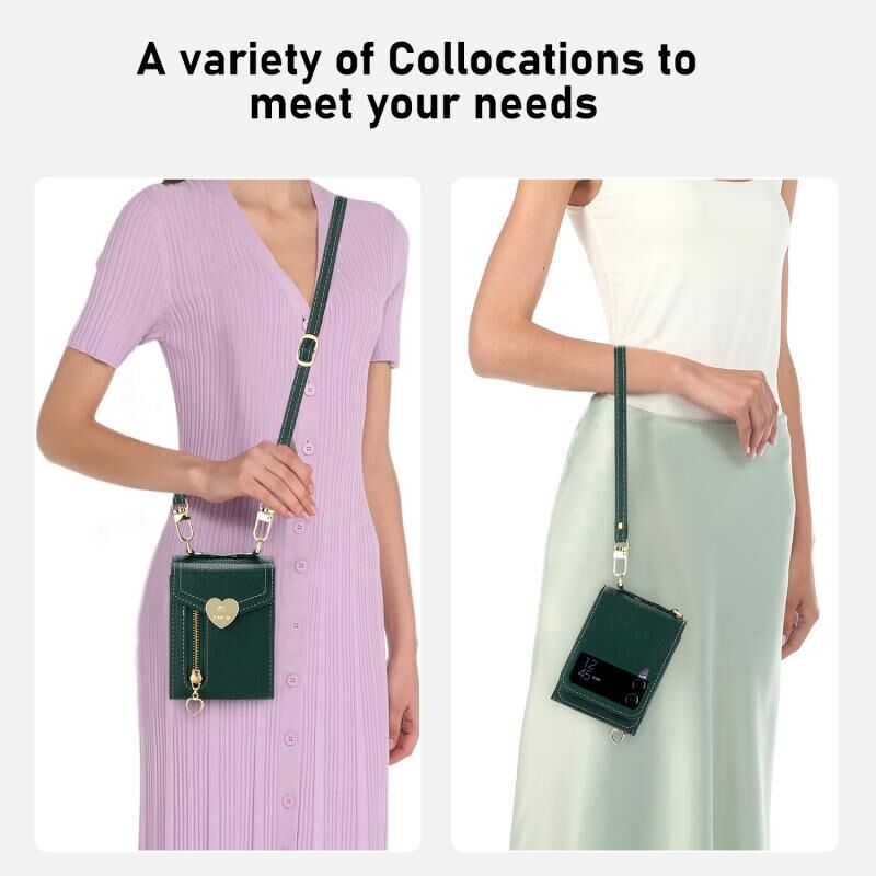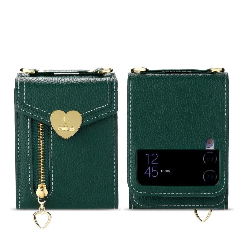 Για Samsung Galaxy Z Flip3 5G POLA Litchi Υφή αγάπη πόρπη Multi-Card Slots φερμουάρ πορτοφόλι υπόθεση τηλεφώνου (πράσινο) (πράσινο)