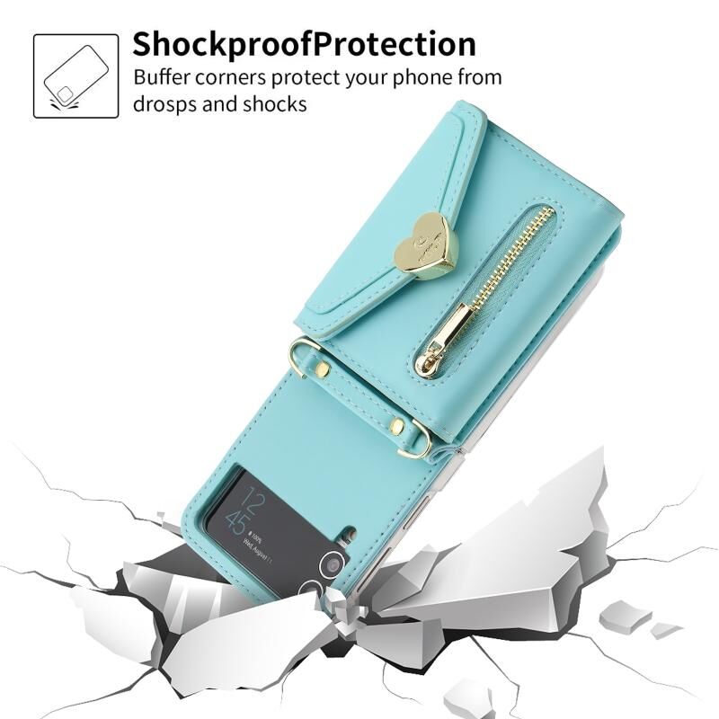 Για Samsung Galaxy Z Flip3 5G POLA αγάπη πόρπη πολλαπλών καρτών υποδοχές φερμουάρ πορτοφόλι υπόθεση τηλεφώνου (μπλε) (POLA)