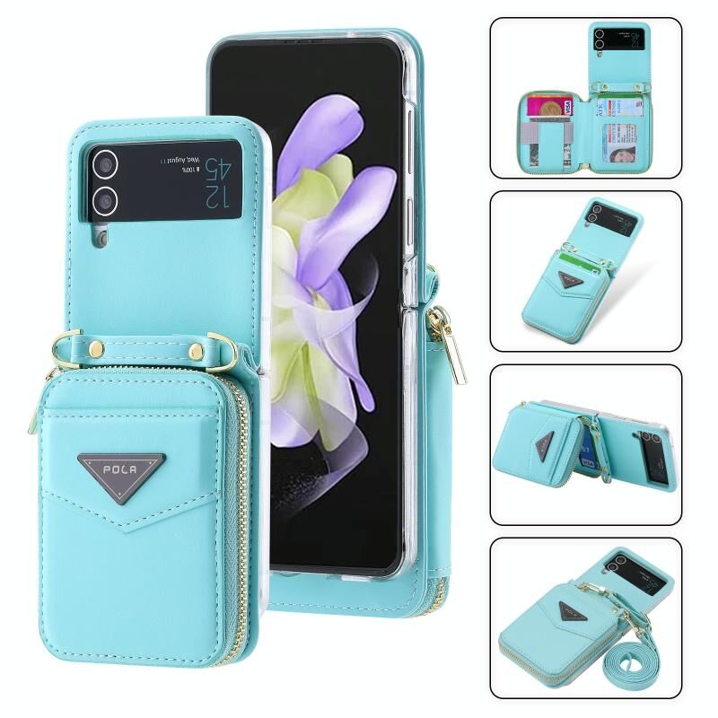 Για Samsung Galaxy Z Flip3 5G POLA Multi-Card Slots φερμουάρ πορτοφόλι υπόθεση τηλεφώνου (μπλε) (Μπλε)