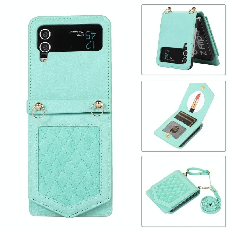 Για Samsung Galaxy Z Flip3 5G Rhombic Texture RFID υπόθεση τηλεφώνου με κορδόνι & καθρέφτη (πράσινο χρώμα)