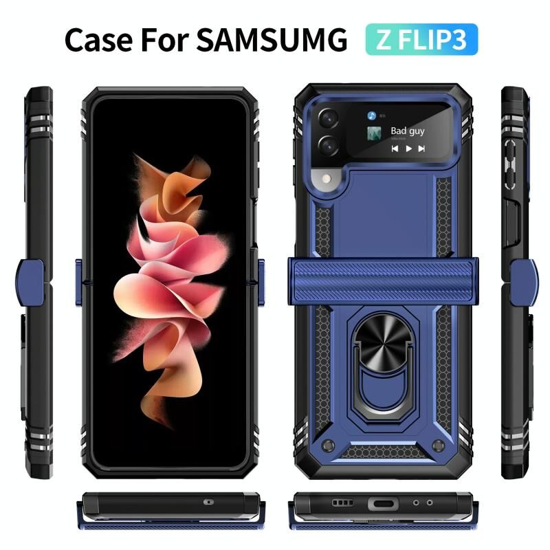 Για Samsung Galaxy Z Flip3 5G Shockproof TPU + PC Προστατευτική θήκη τηλεφώνου με 360 μοίρες περιστρεφόμενη θήκη (μπλε)