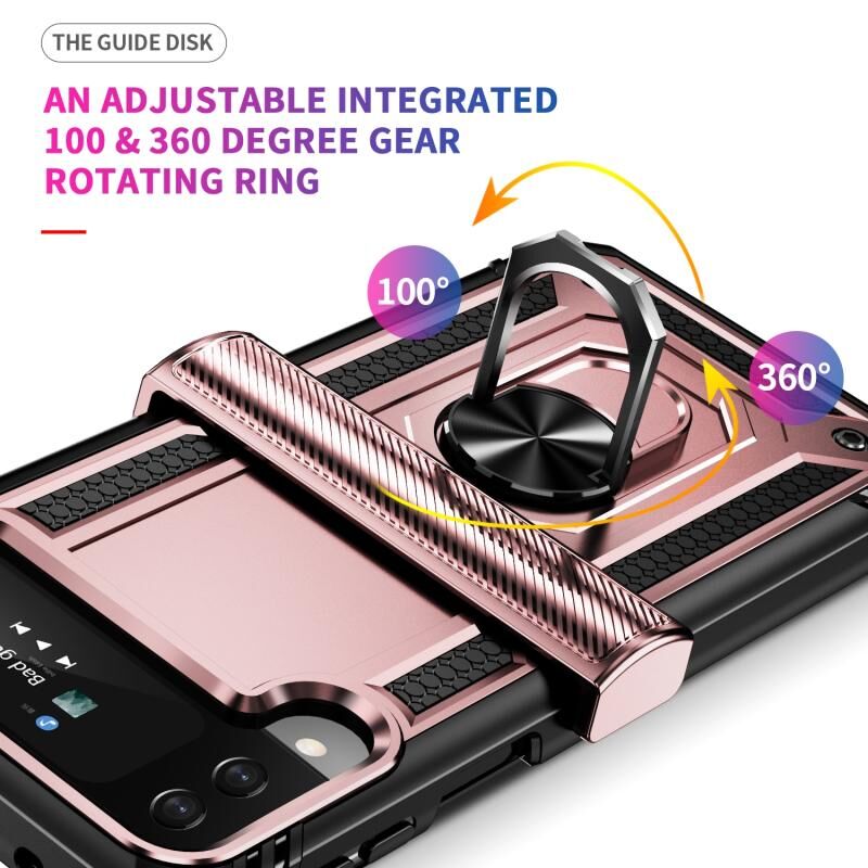 Για Samsung Galaxy Z Flip3 5G Shockproof TPU + PC Προστατευτική θήκη τηλεφώνου με 360 μοίρες περιστρεφόμενη θήκη (Rose Gold)
