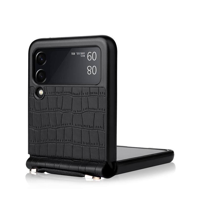 Για Samsung Galaxy Z Flip3 5G Siamese Bamboo Υφή τηλέφωνο υπόθεση με κορδόνι (μαύρο)