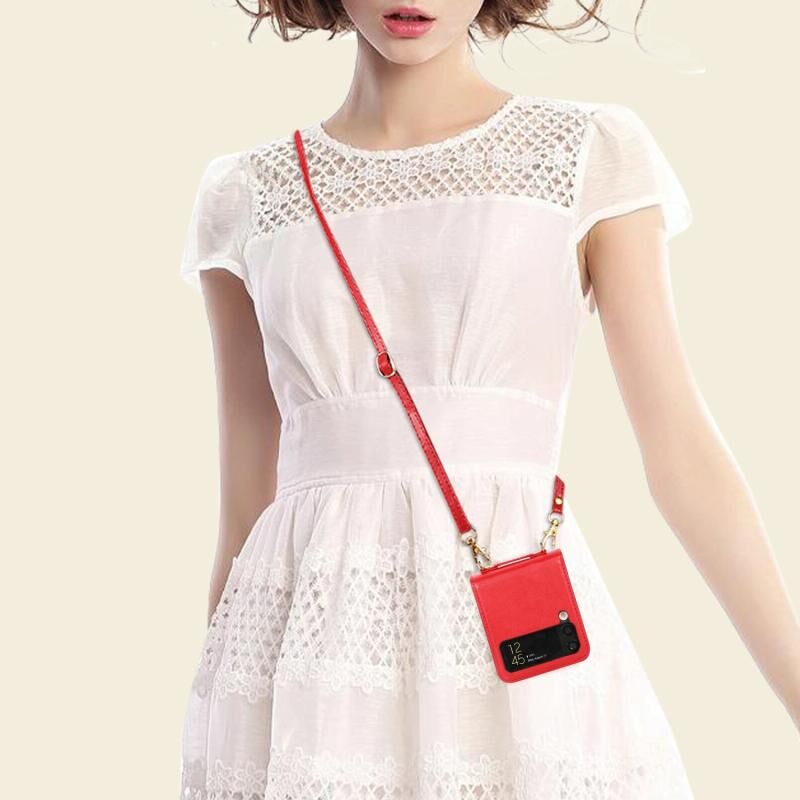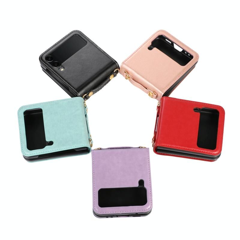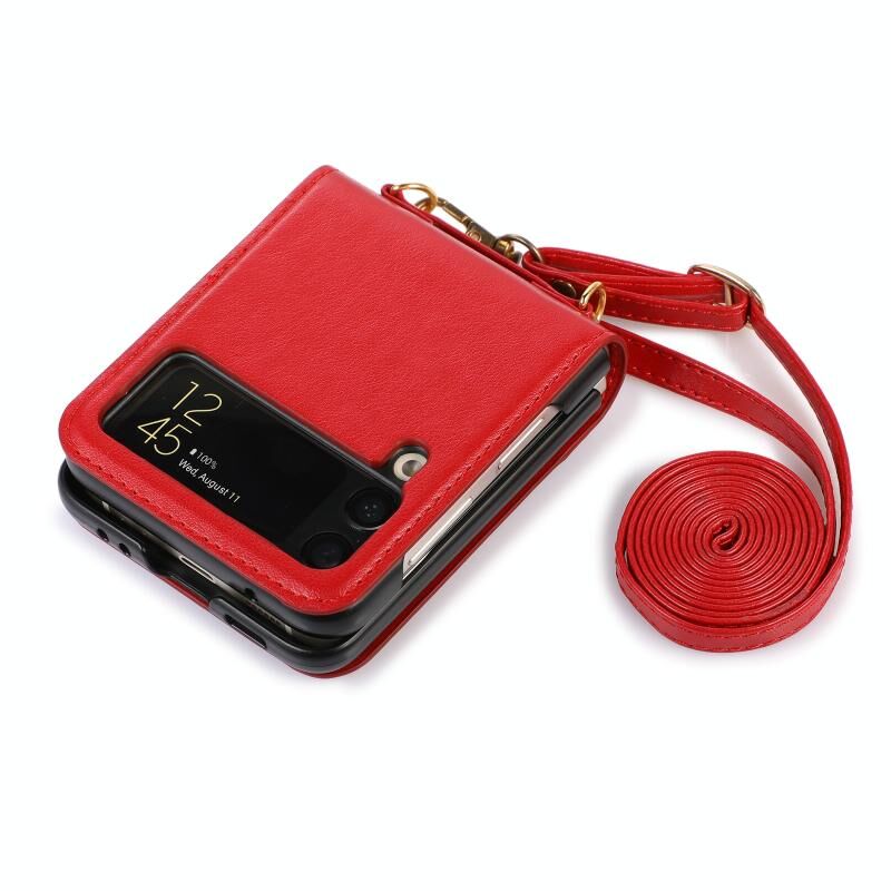 Για Samsung Galaxy Z Flip3 5G ραφή χρώμα πτυσσόμενο δέρμα τηλέφωνο υπόθεση με υποδοχή κάρτας (κόκκινο)