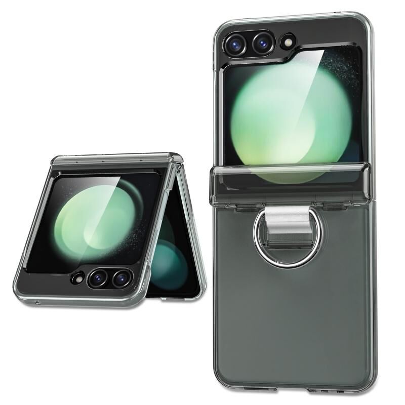 Θήκη τηλεφώνου για Samsung Galaxy Z Flip3 5G TPU+PC, αναδιπλούμενο κεντρικό άξονα, με δακτύλιο (Διαφανές Μαύρο)