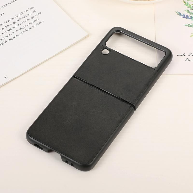 Για Samsung Galaxy Z Flip3 5G Δύο-χρώμα μοσχάρι Υφή PU υπόθεση τηλεφώνου (Μαύρο)