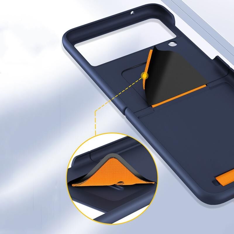 Για Samsung Galaxy Z Flip3 5G καρπό λουράκι δέρματος αίσθηση παγωμένο PC υπόθεση τηλεφώνου (Navy Blue)