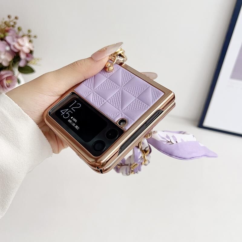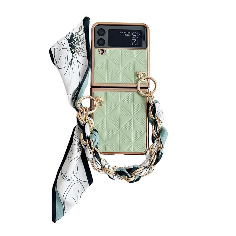 Για Samsung Galaxy Z Flip3 καρό κασκόλ βραχιόλι τηλέφωνο υπόθεση (Teal)
