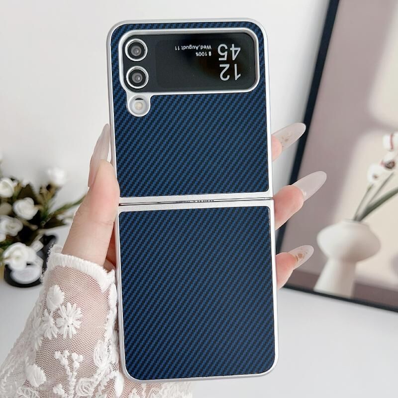 Για Samsung Galaxy Z Flip3 / Flip4 Kevlar ανθρακονήματα Ultra-thin Shockproof τηλέφωνο υπόθεση (σκούρο μπλε)