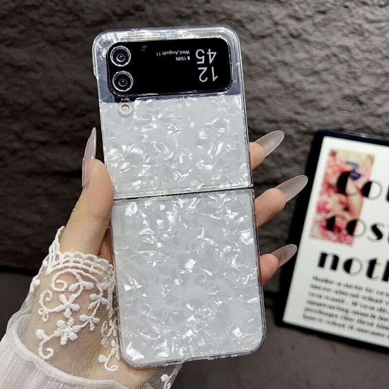 Για το Samsung Galaxy Z Flip3 / Flip4 Pearlescent Shell Υφή υπόθεση τηλεφώνου (λευκό)