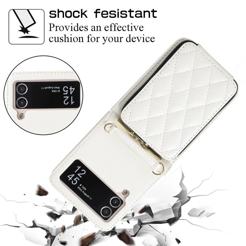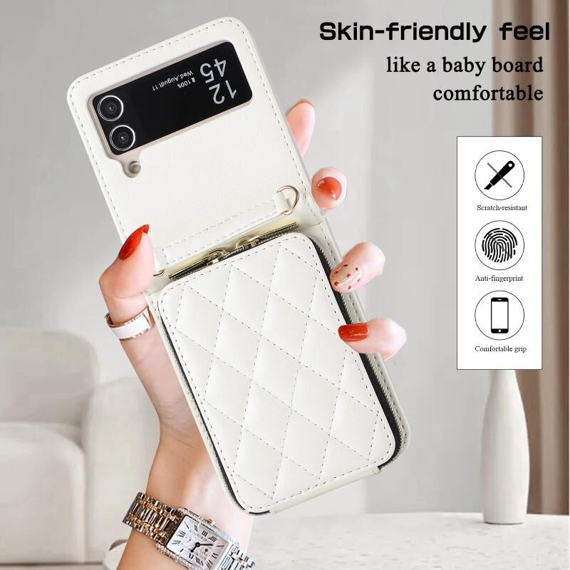 Για Samsung Galaxy Z Flip3 Rhombic πλήρη φερμουάρ πορτοφόλι δερμάτινη θήκη τηλεφώνου (λευκό)