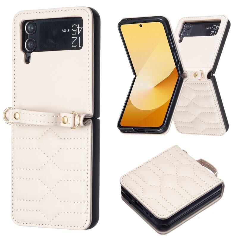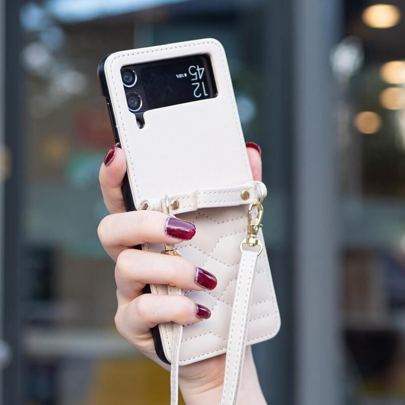 Για Samsung Galaxy Z Flip3 V-σχήμα Crossbody Lanyard δέρμα τηλέφωνο υπόθεση (Μπεζ)