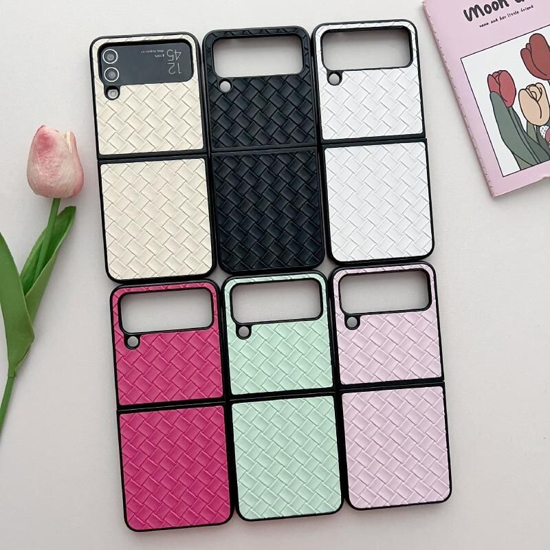 Θήκη τηλεφώνου Samsung Galaxy Z Flip3 με υφανή υφή, πτυσσόμενη από PU (Χρυσό)