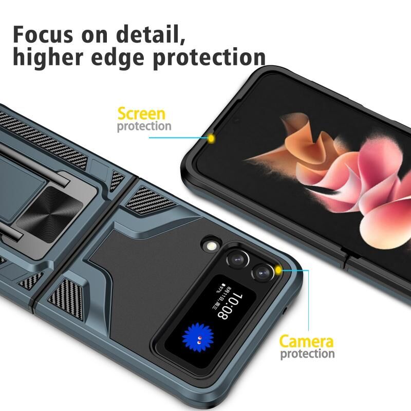 Για το Samsung Galaxy Z Flip4 2 σε 1 Kickstand μαγνητική θωράκιση θήκη για τηλέφωνο (κυανό)
