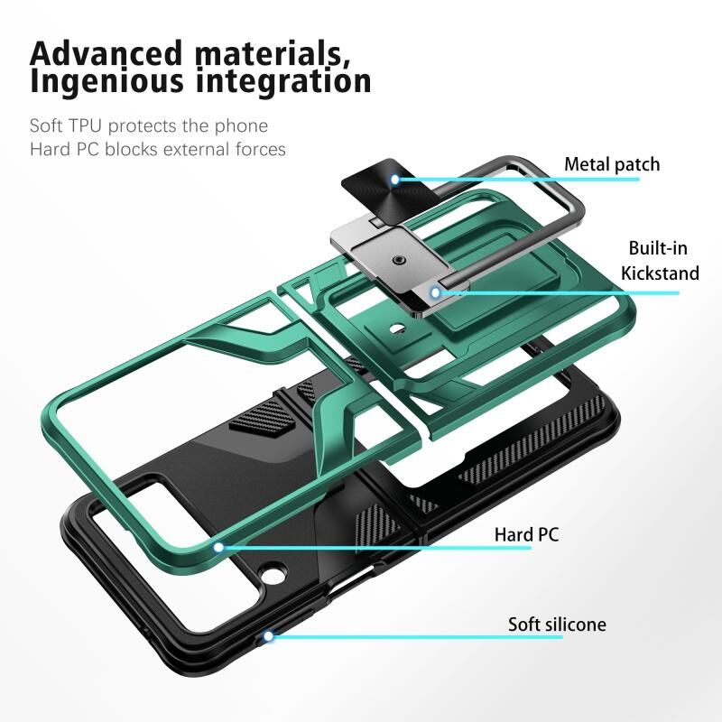 Για το Samsung Galaxy Z Flip4 2 σε 1 Kickstand μαγνητική θωράκιση θήκη για τηλέφωνο (πράσινο)