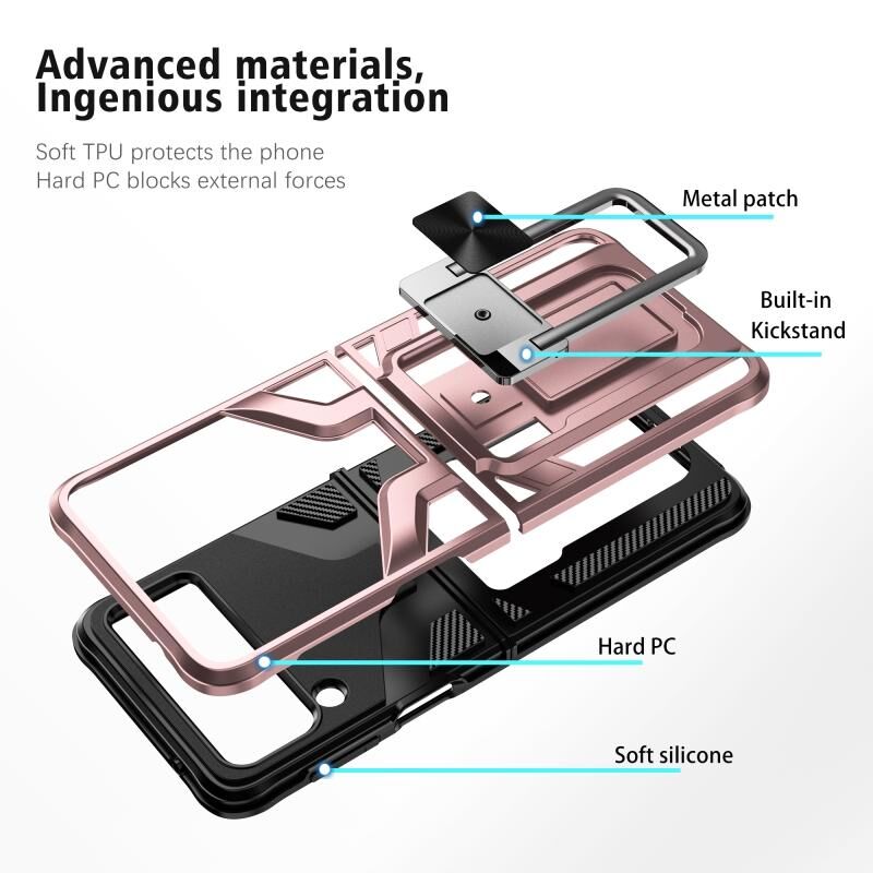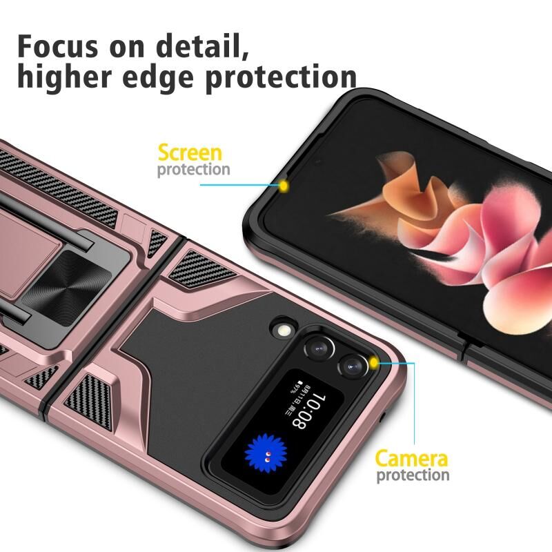 Για το Samsung Galaxy Z Flip4 2 σε 1 Kickstand μαγνητική θωράκιση θήκη τηλέφωνο Shockproof (Rose Gold)