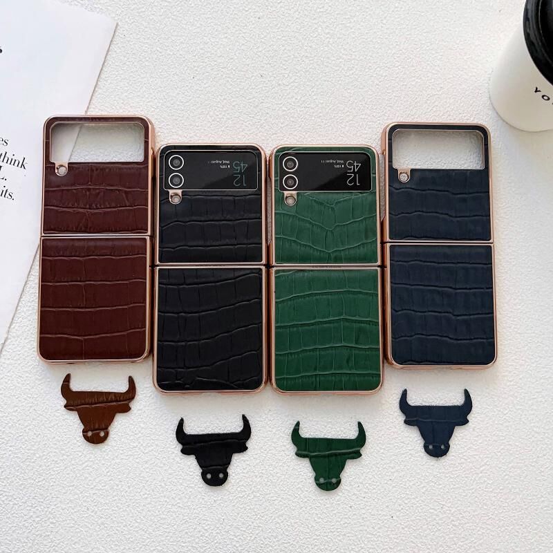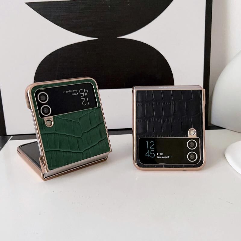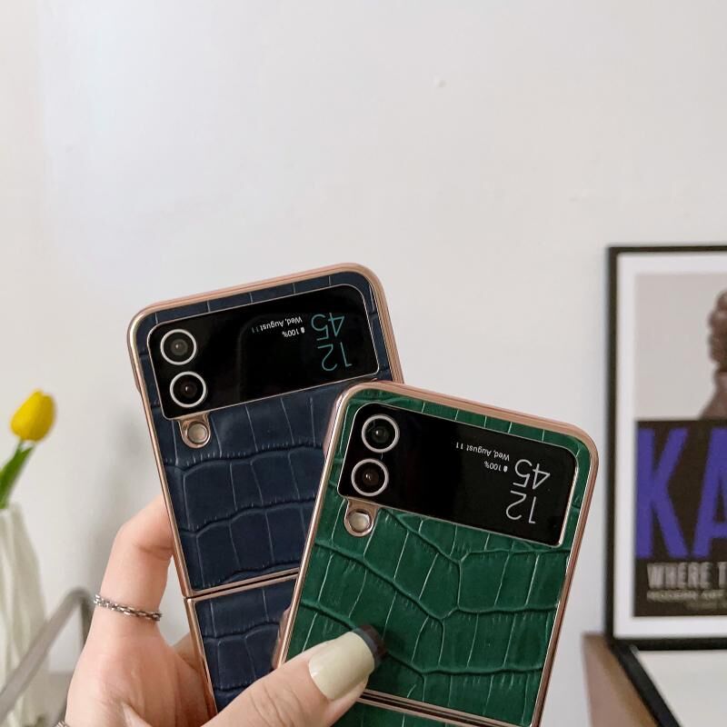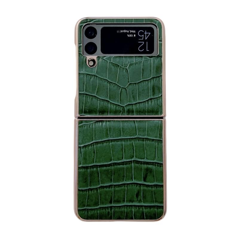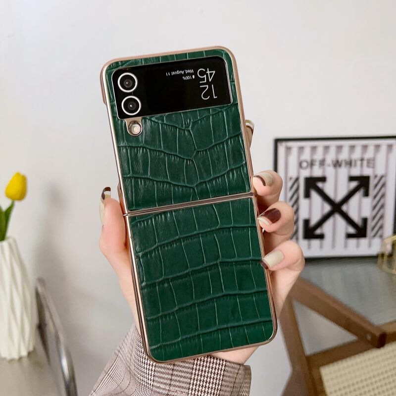 Θήκη τηλεφώνου Samsung Galaxy Z Flip4 5G με γνήσιο δέρμα υφής κροκόδειλου και ηλεκτρολυτική επίστρωση (Μαύρο)