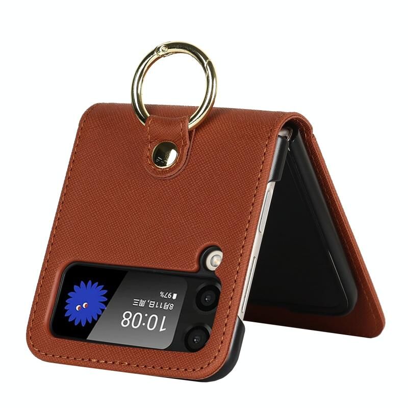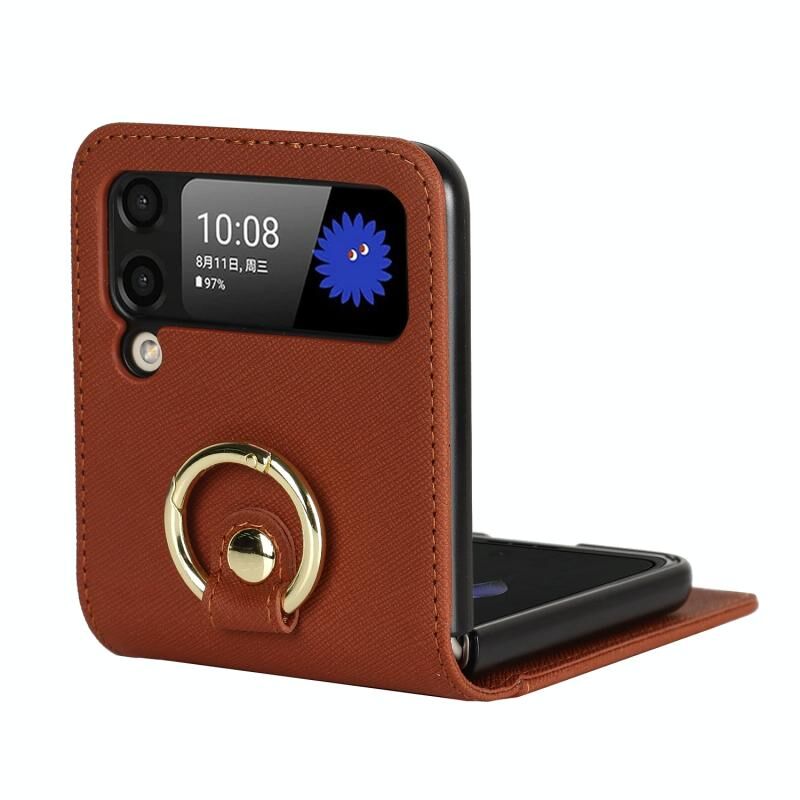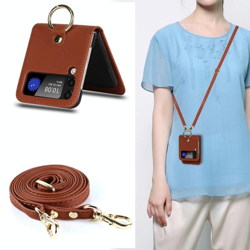 Για Samsung Galaxy Z Flip4 5G Σταυρός υφή Lanyard δαχτυλίδι τηλέφωνο υπόθεση (καφέ)