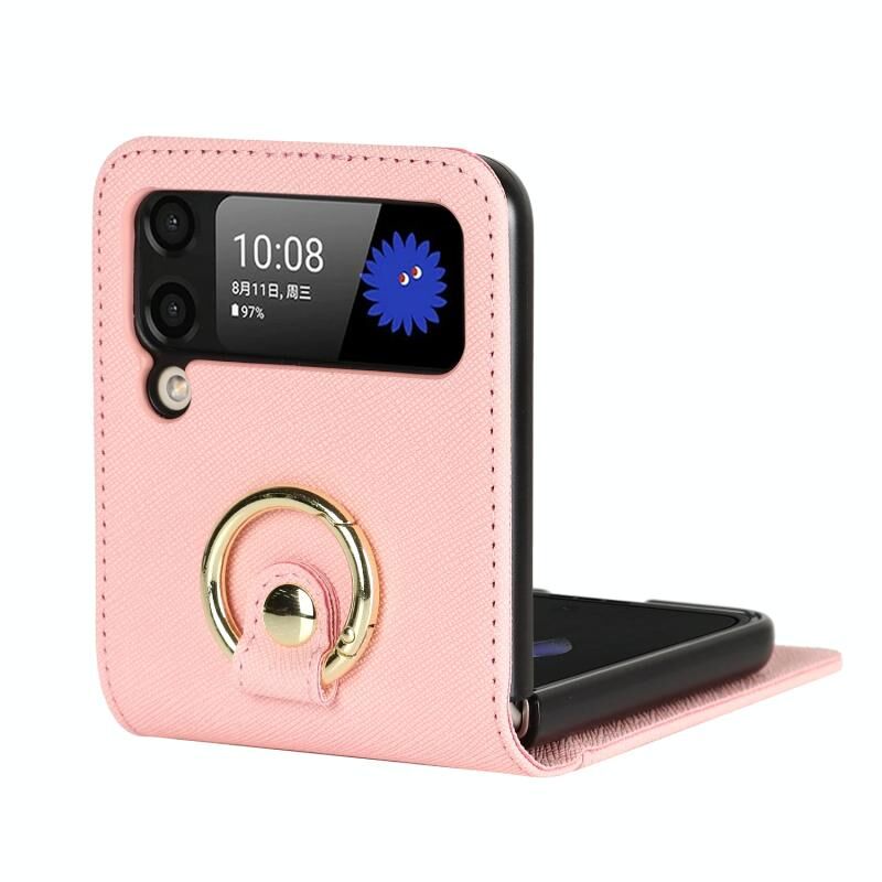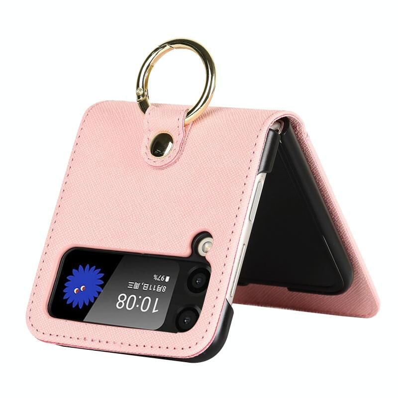 Για Samsung Galaxy Z Flip4 5G Σταυρός υφή Lanyard δαχτυλίδι τηλέφωνο υπόθεση (ροζ)
