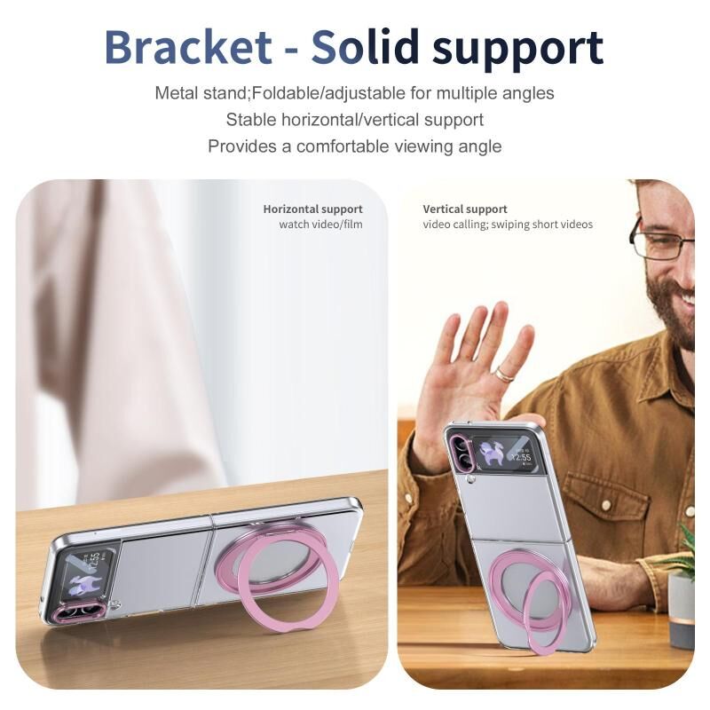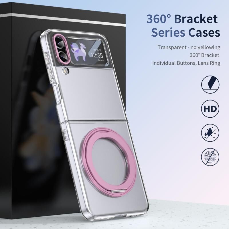For Samsung Galaxy Z Flip4 5G Integrated Ice-feel High-transparency 360-Degree Rotating Stand MagSafe Folding Phone Case(Pink)