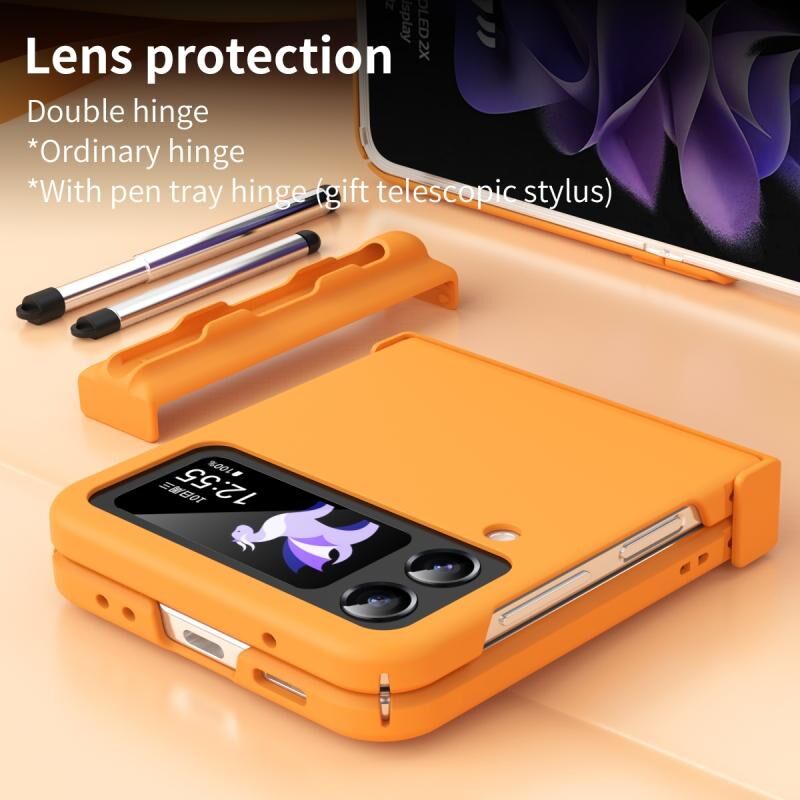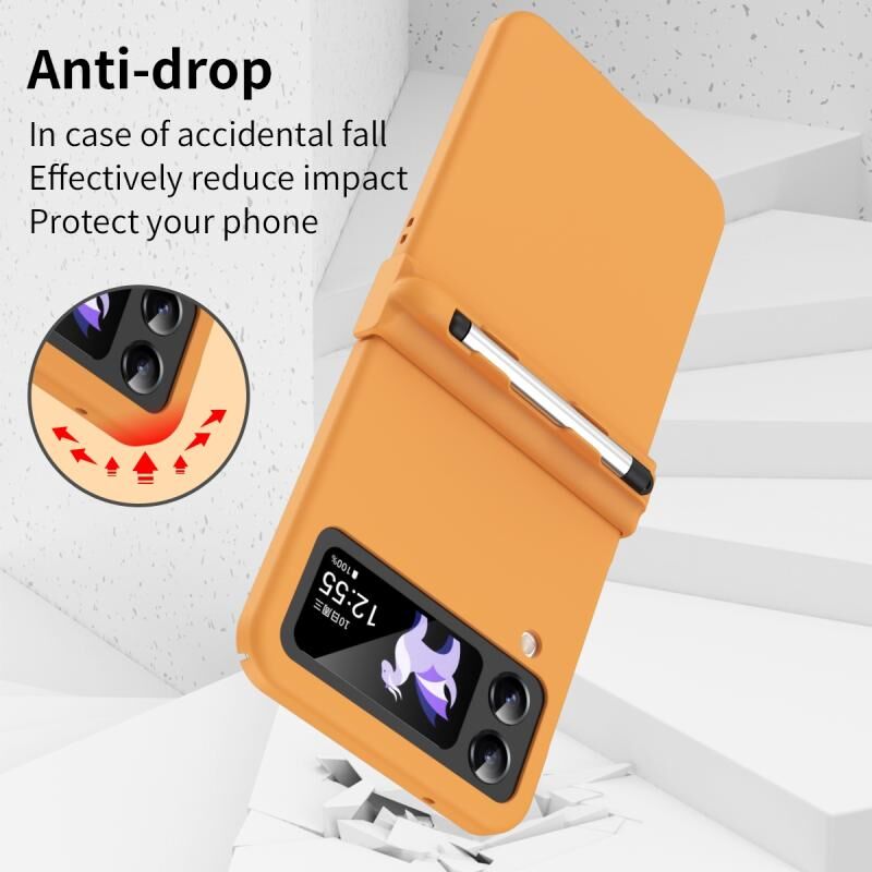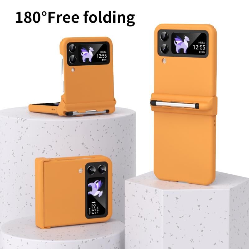 Για Samsung Galaxy Z Flip4 5G Macaron Τρία τεμάχια σετ θήκη τηλεφώνου με γραφίδα (πορτοκαλί)