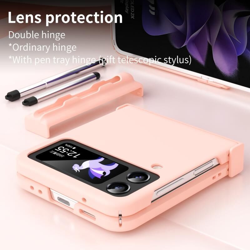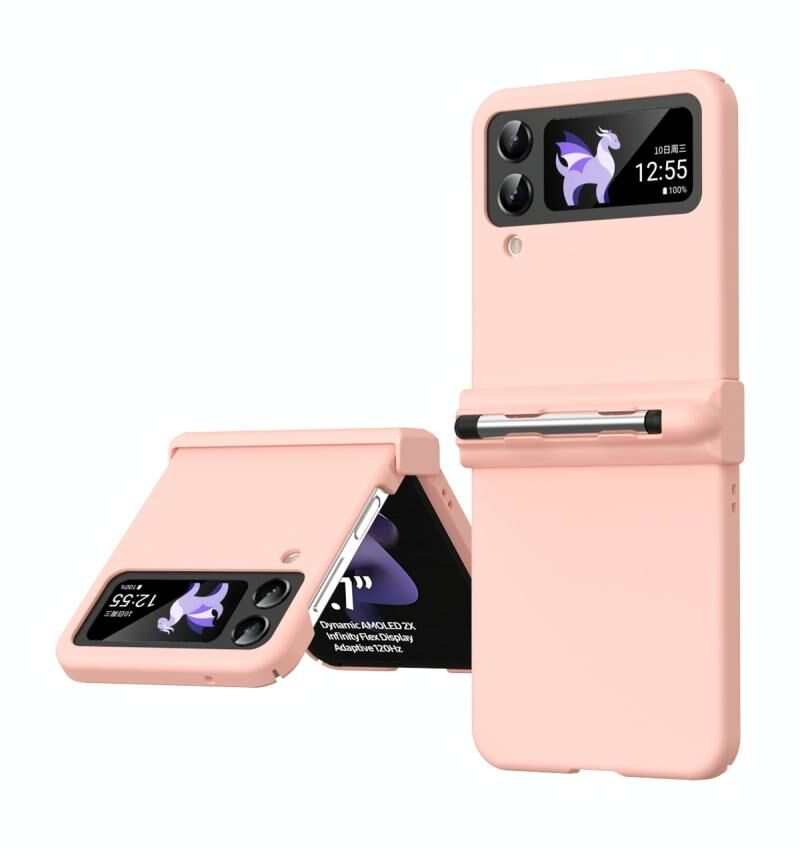 Για Samsung Galaxy Z Flip4 5G Μακαρόν Τρία τεμάχια σετ θήκη τηλεφώνου με γραφίδα (ροζ)