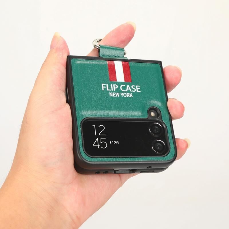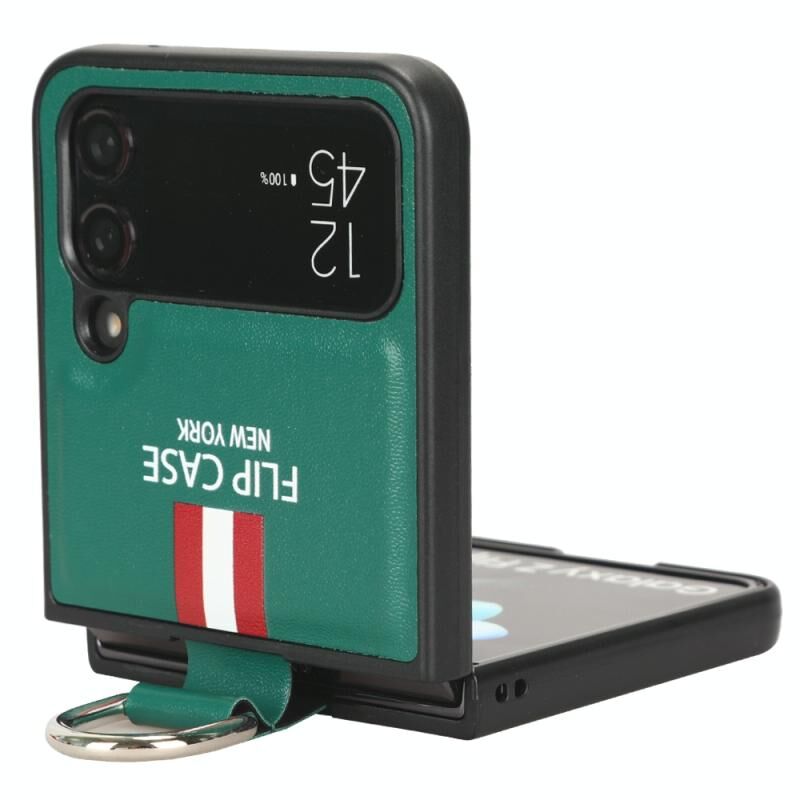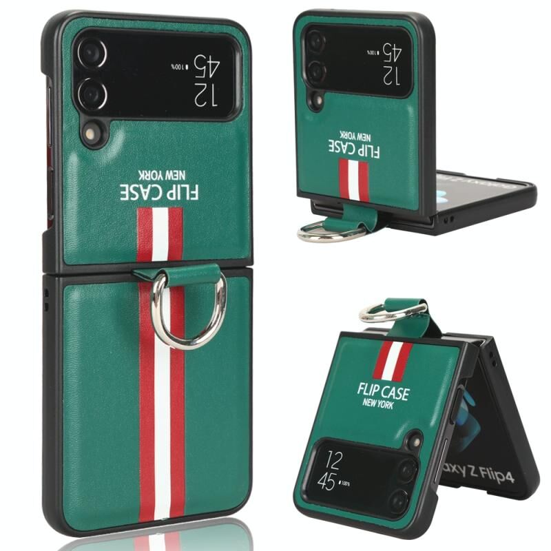 Για Samsung Galaxy Z Flip4 5G Απλή δερμάτινη θήκη τηλεφώνου δαχτυλίδι (πράσινο)