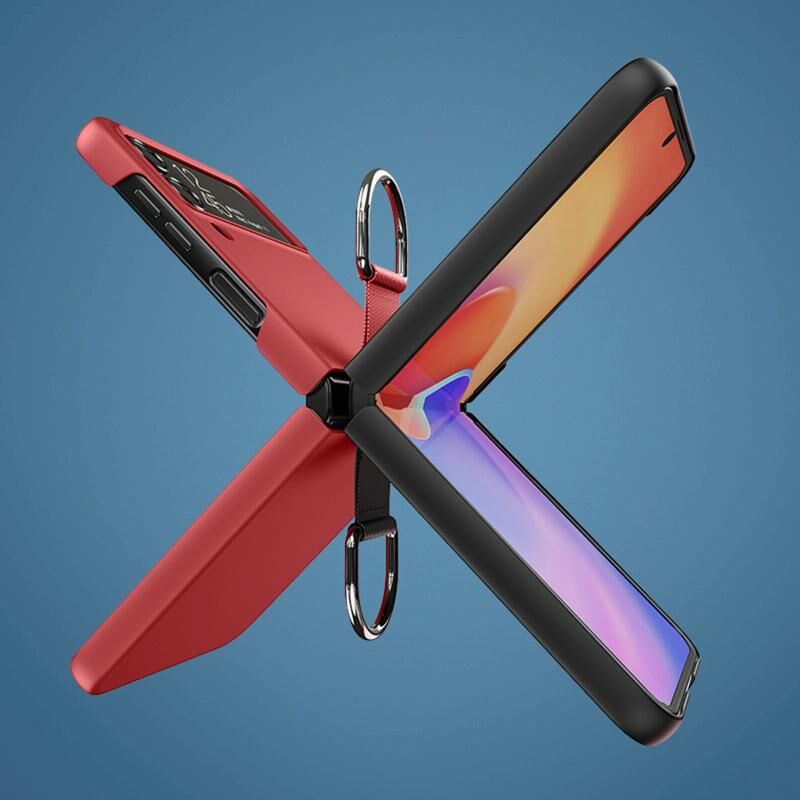 Για Samsung Galaxy Z Flip4 5G δέρμα αίσθηση PC + φανέλα Προστατευτική θήκη τηλεφώνου με γάντζο δαχτυλίδι (Μαύρο)