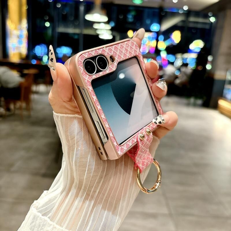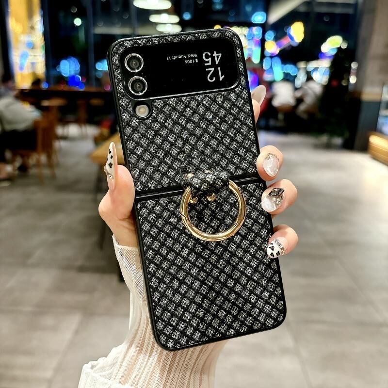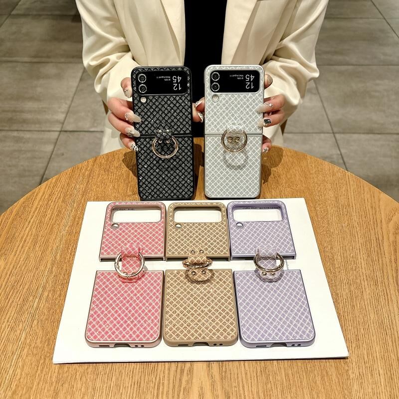 Θήκη τηλεφώνου για Samsung Galaxy Z Flip4 5G, με σχέδιο Sparkling Diamond Rhombus από PC, με δαχτυλίδι (Μωβ)
