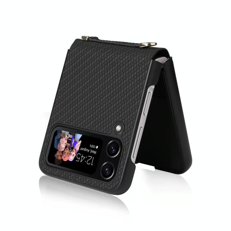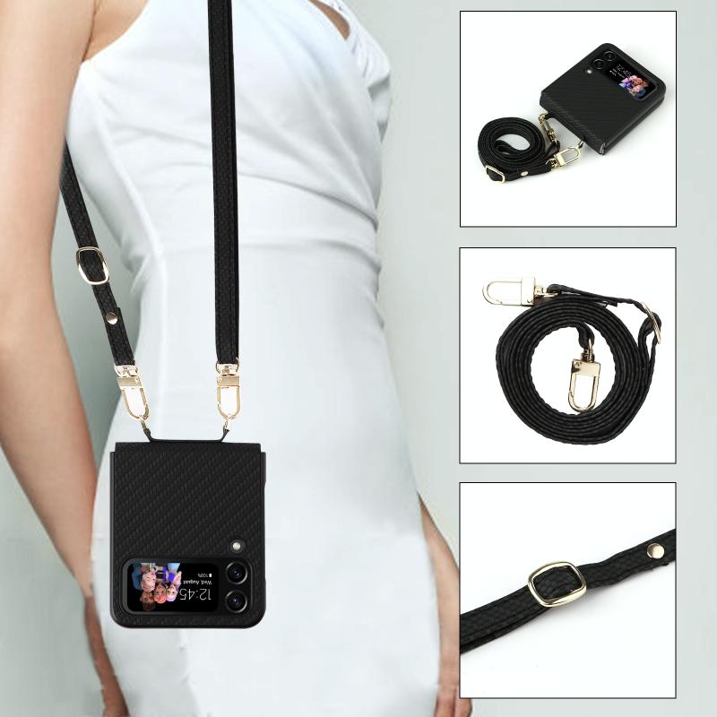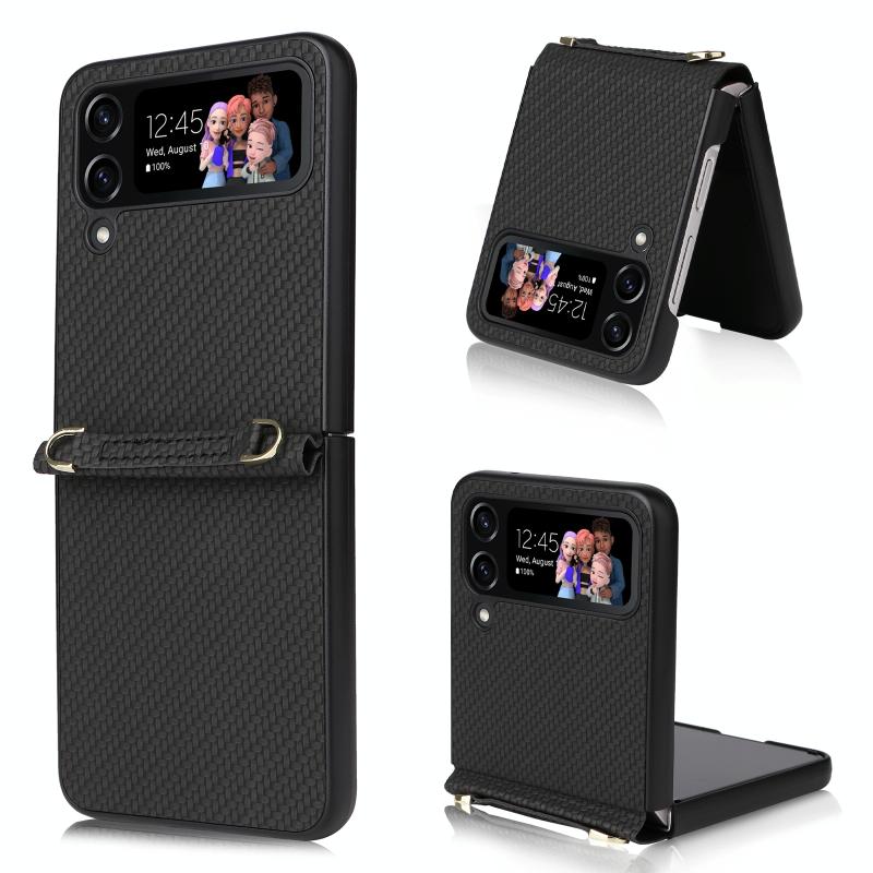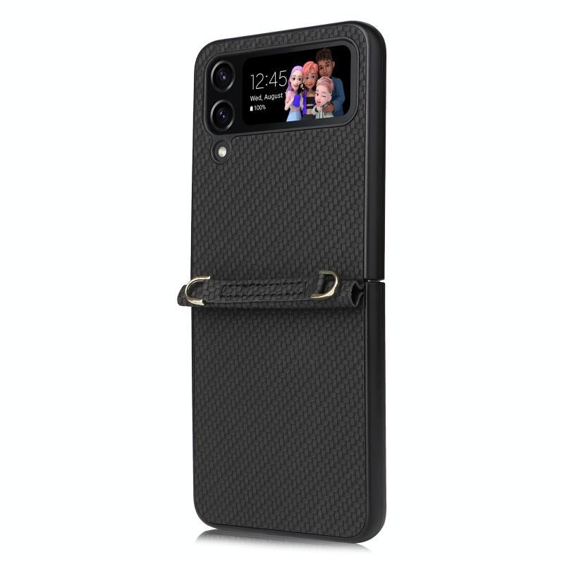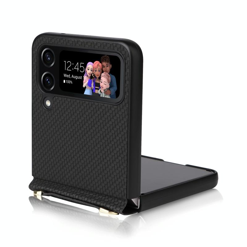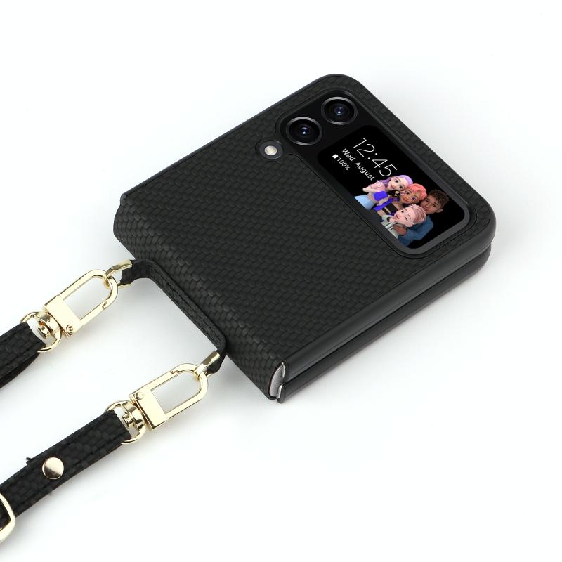 For Samsung Galaxy Z Flip4 5G Straw Mat Texture Lanyard Phone Case(Black)