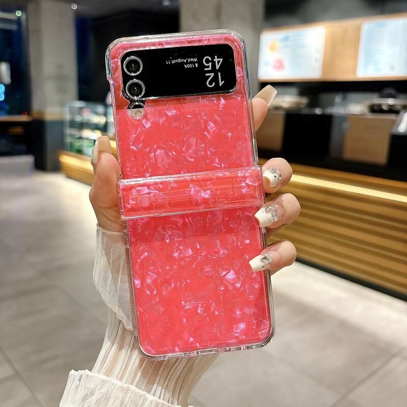 Για Samsung Galaxy Z Flip4 5G Τρία τεμάχια Set Pearlescent Shell Υφή υπόθεση τηλεφώνου (κόκκινο)