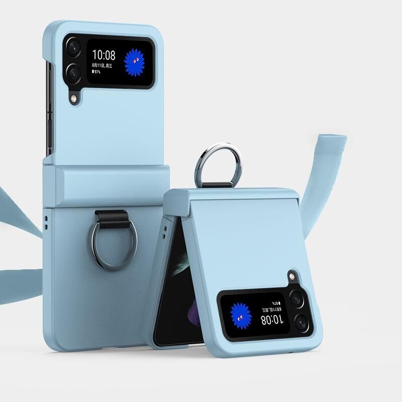 For Samsung Galaxy Z Flip4 5G Ultra-thin Skin Feel Ring Phone Case with Hinge(Sky Blue)
