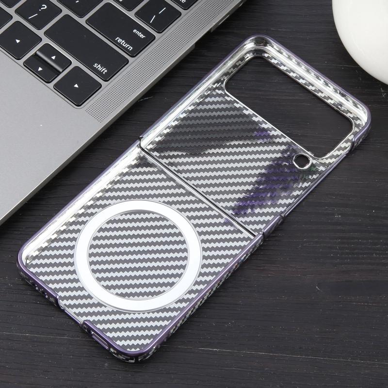 For Samsung Galaxy Z Flip4 6D Plated Carbon Fiber Clear Magsafe PC Phone Case(Aurora Purple)