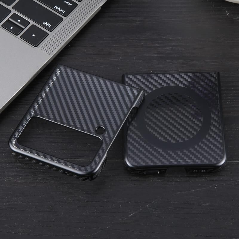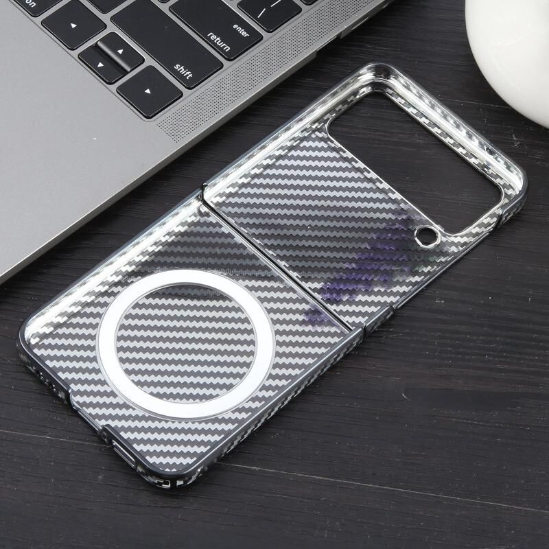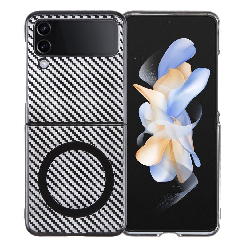 Θήκη κινητού τηλεφώνου Samsung Galaxy Z Flip4 6D με επικάλυψη ανθρακονήματος, διαφανής, με MagSafe, από PC (Ασημί Αστρόφωτο)