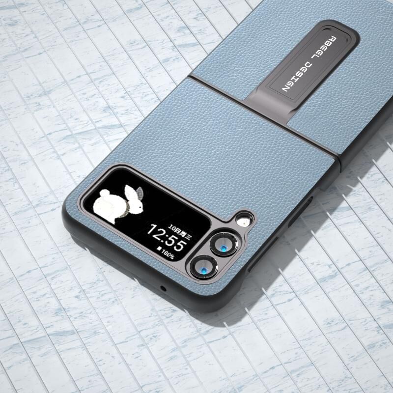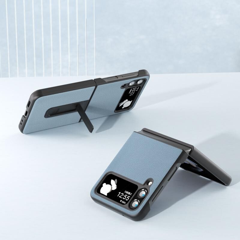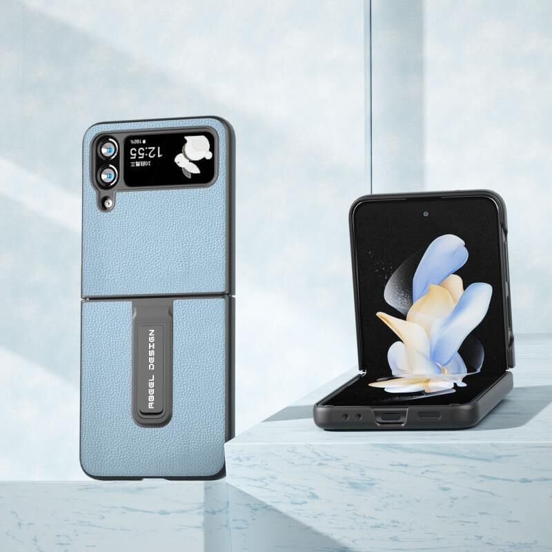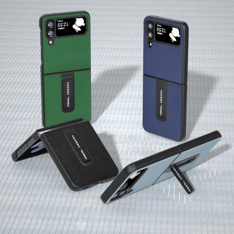 Θήκη τηλεφώνου Mino από γνήσιο δέρμα για Samsung Galaxy Z Flip4 Μαύρο Edge με βάση στήριξης (Πράσινο)