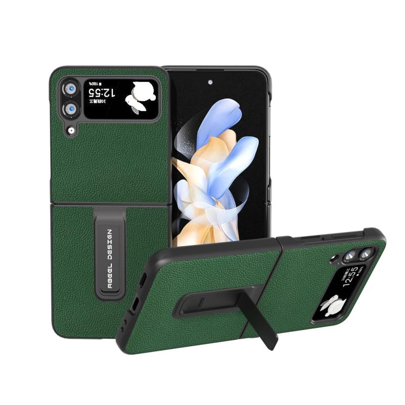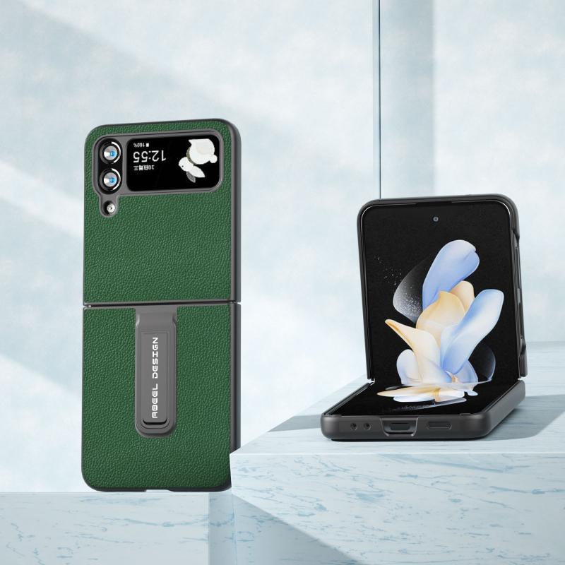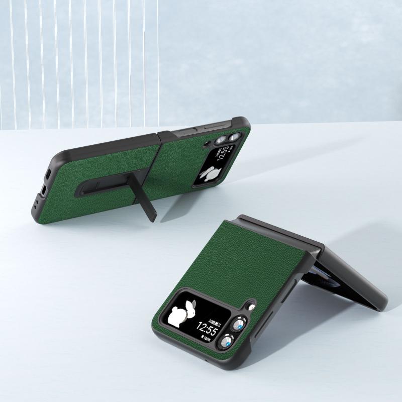 For Samsung Galaxy Z Flip4 Black Edge Genuine Leather Mino Phone Case with Holder(Green)