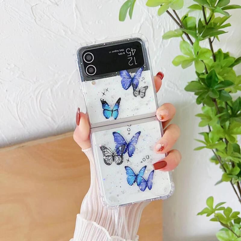 For SAMSUNG Galaxy Z Flip4 Butterfly Glitter TPU Phone Case(Blue)