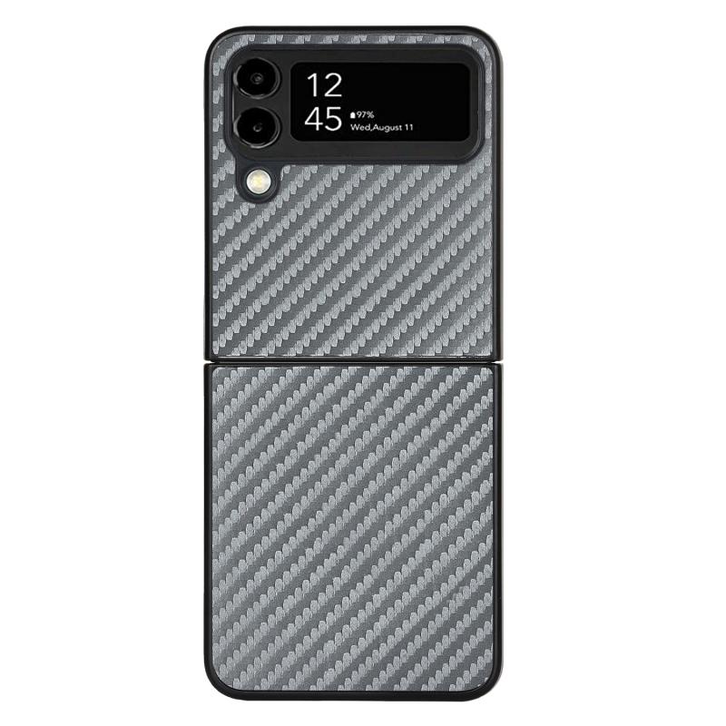 Θήκη για Samsung Galaxy Z Flip4 από Δέρμα με Υφή Άνθρακα, Διπλού Υφάσματος (Γκρι)