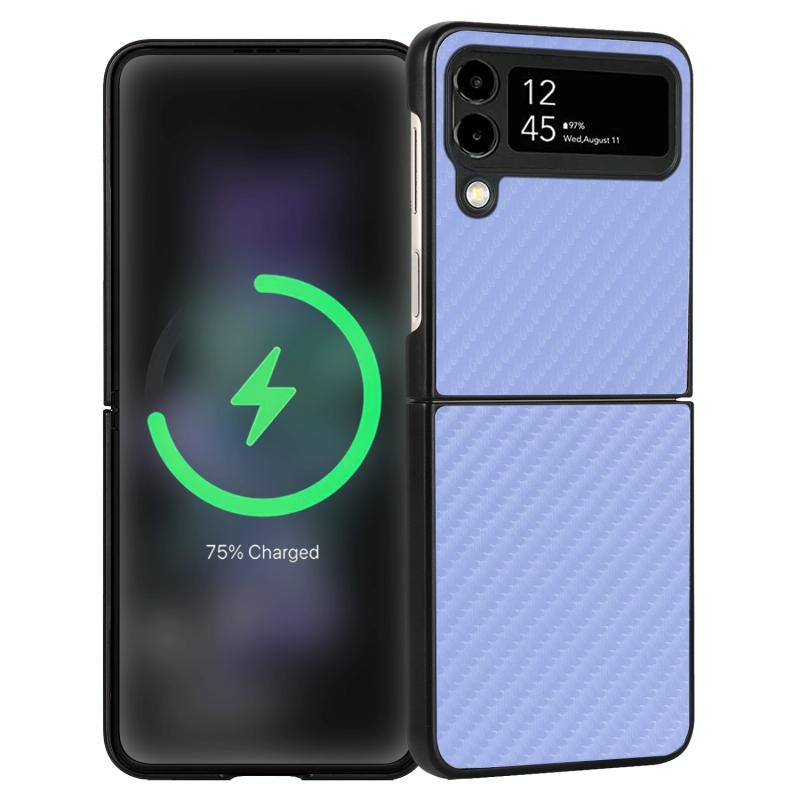 Θήκη για Samsung Galaxy Z Flip4 από Δέρμα με Υφή Άνθρακα, Διπλού Υφάσματος (Γκρι)