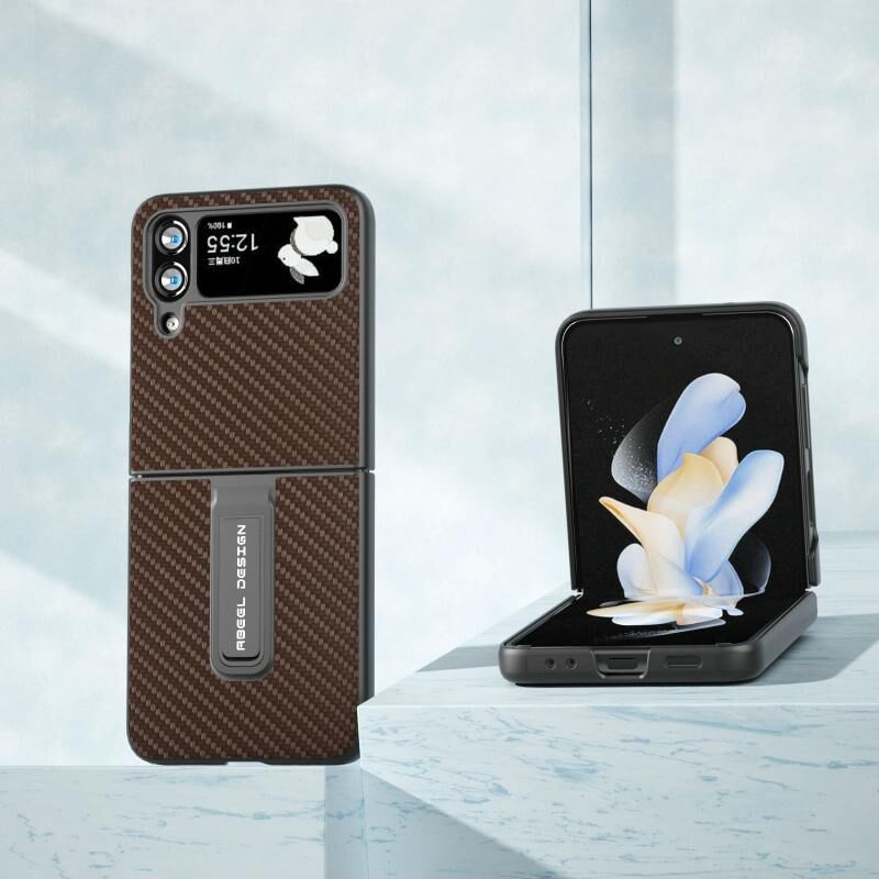 Για Samsung Galaxy Z Flip4 Carbon Fiber Υφή Προστατευτική θήκη τηλεφώνου με θήκη (σκούρο καφέ)