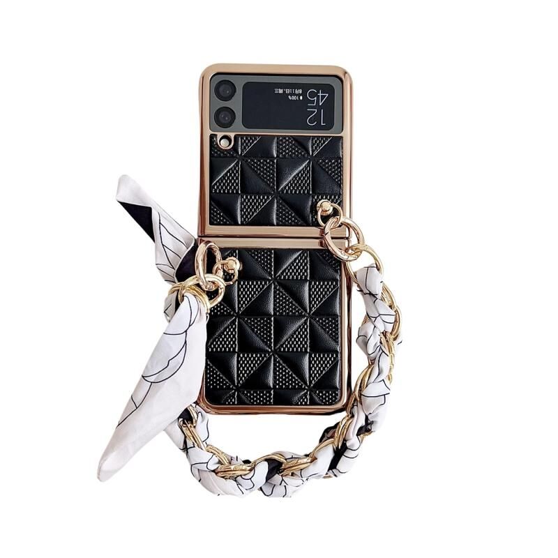 Για Samsung Galaxy Z Flip4 καρό κασκόλ κασκόλ βραχιόλι υπόθεση τηλεφώνου (μαύρο)