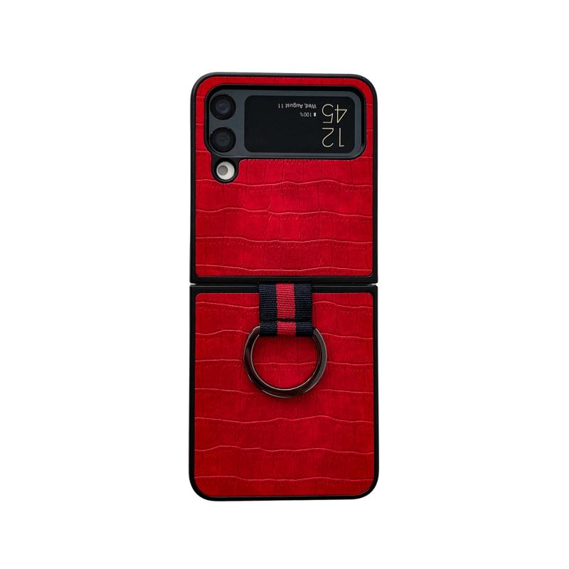 For Samsung Galaxy Z Flip4 Crocodile Texture PU Phone Case With Ring(Red)
