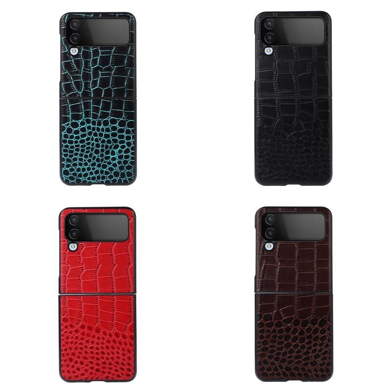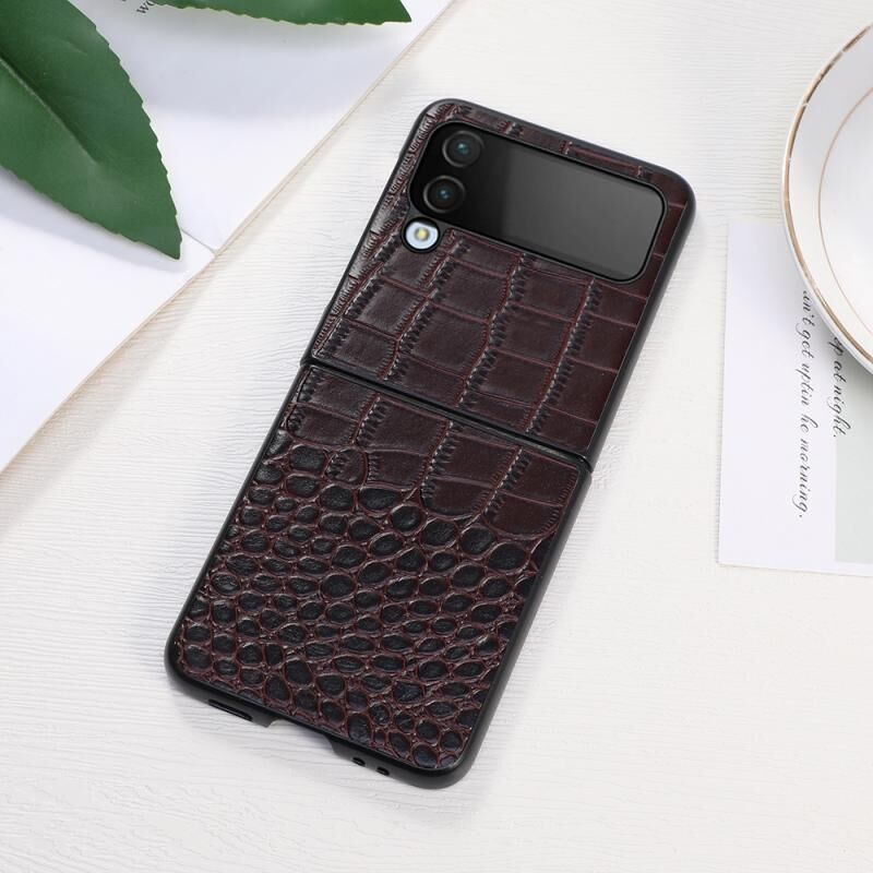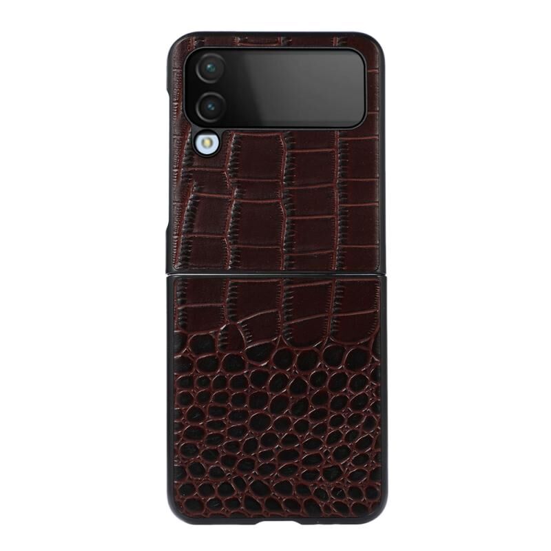 Θήκη τηλεφώνου Samsung Galaxy Z Flip4 από γνήσιο δέρμα αγελάδας με επικάλυψη κροκόδειλου (Καφέ)