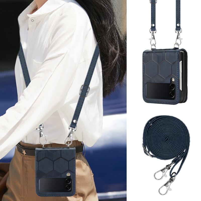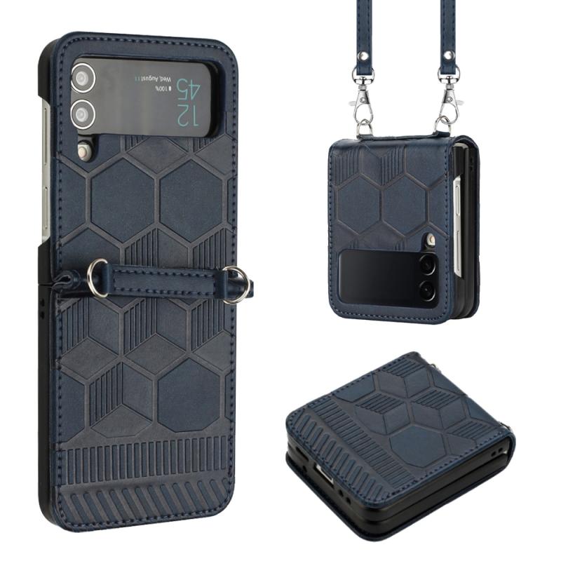 Θήκη τηλεφώνου Samsung Galaxy Z Flip4 Crossbody με υφή ποδοσφαίρου από δέρμα (Κόκκινο)