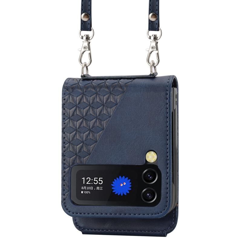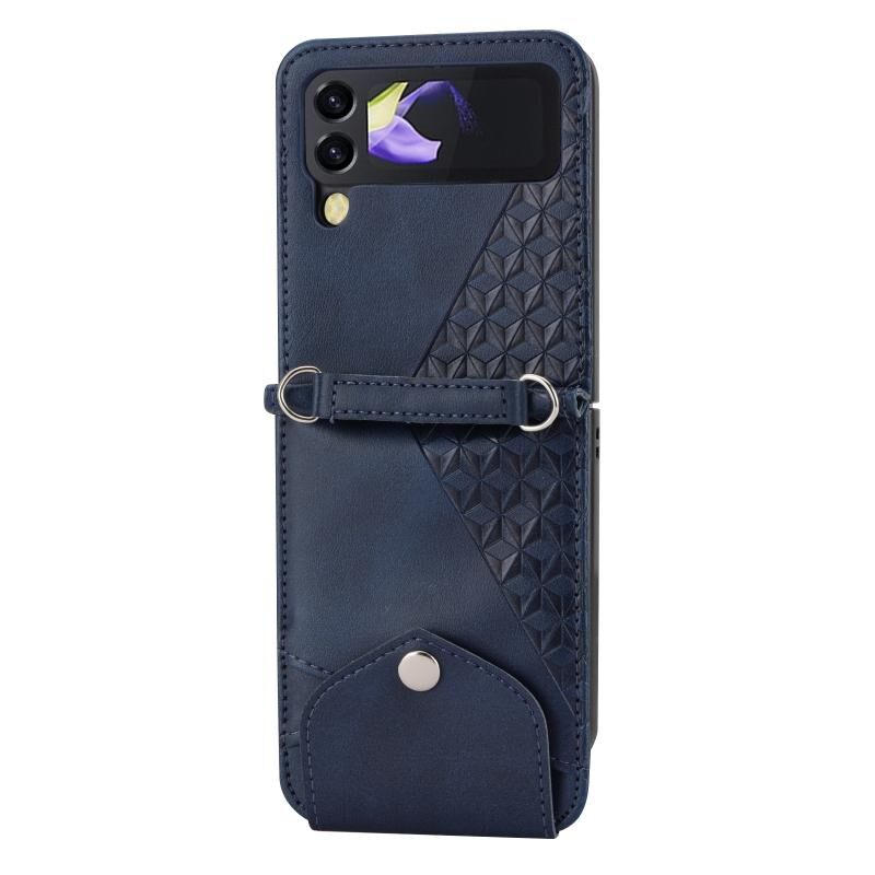 Για Samsung Galaxy Z Flip4 Cubic Grid Calf Texture δέρμα υπόθεση τηλεφώνου με λαιμό κορδόνι (μπλε)